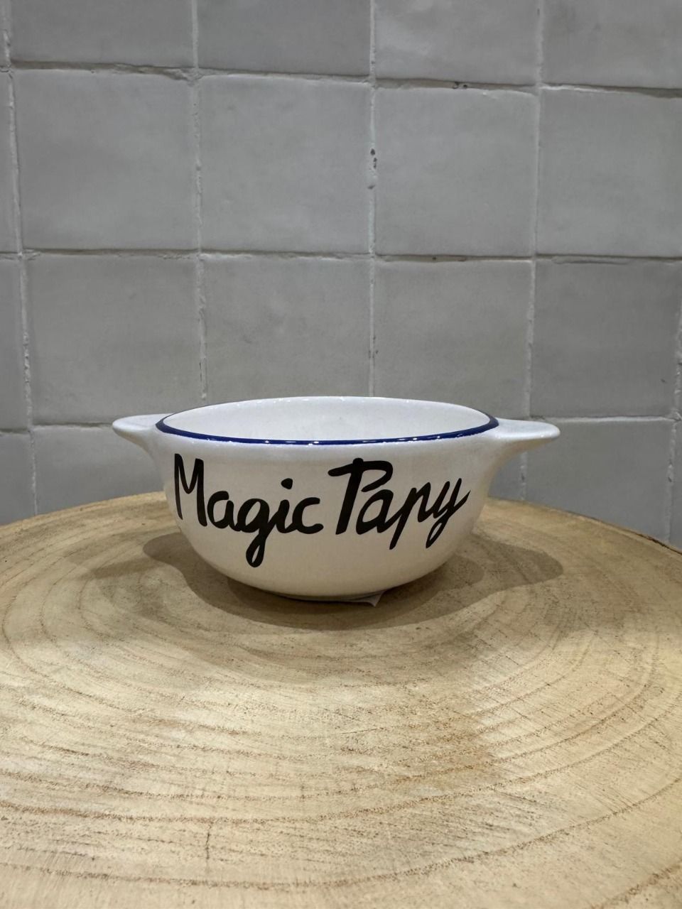 – Matière : Faïence, filet bleu peint-main