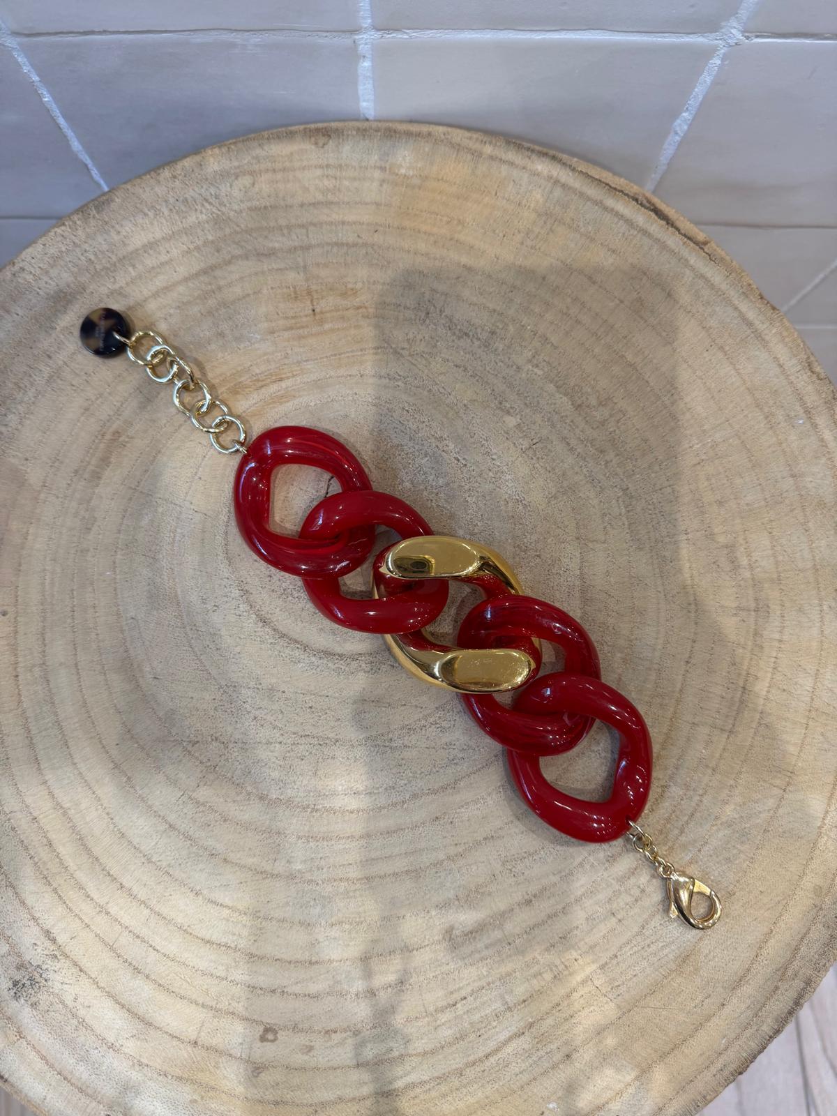 BRACELET MAILLONS ROUGE ET DORÉE - FRANCINE BRAMLI