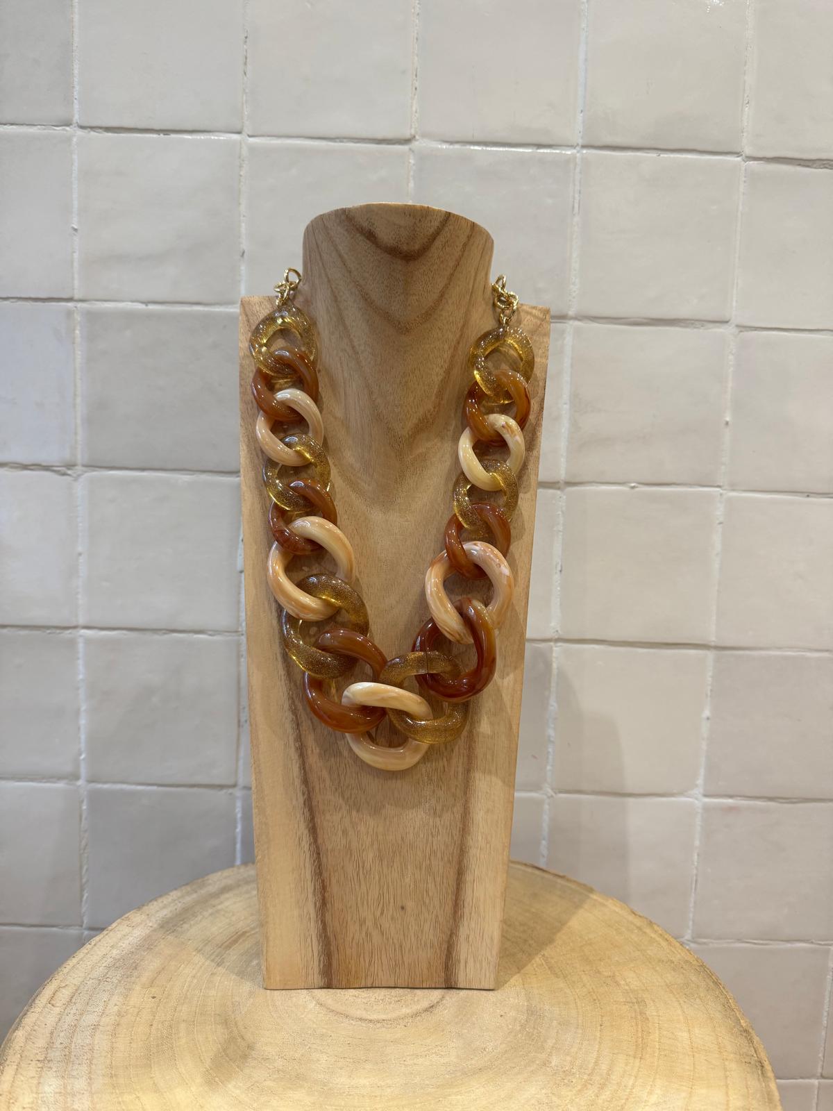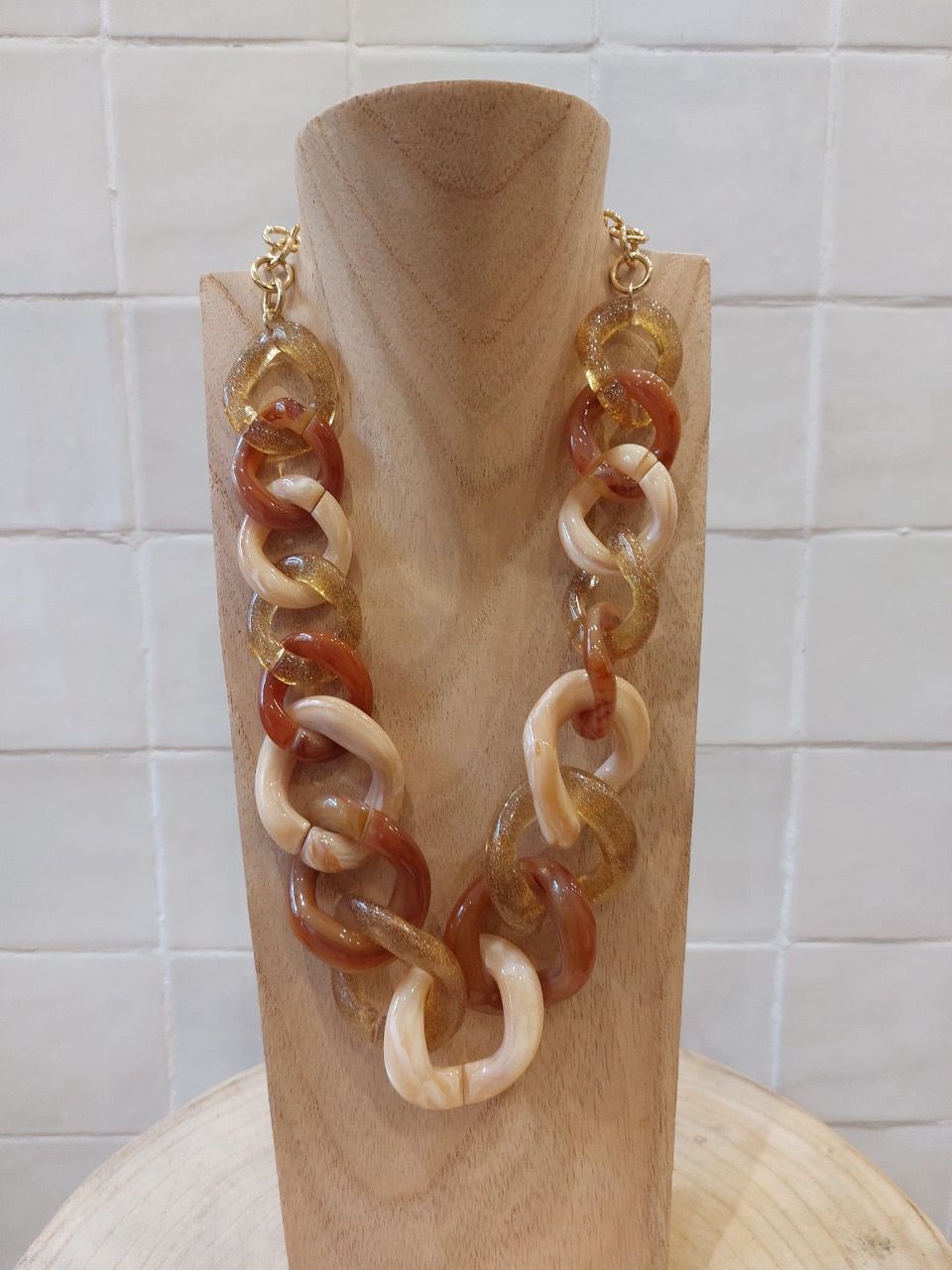 COLLIER MAILLONS BEIGE TRANSPARENTS/DORÉE TERRACOTA - FRANCINE BRAMLI