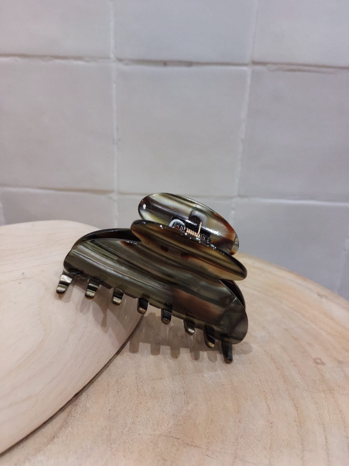 PINCE À CHEVEUX ÉCAILLE STRIÉE VERTE - FRANCINE BRAMLI